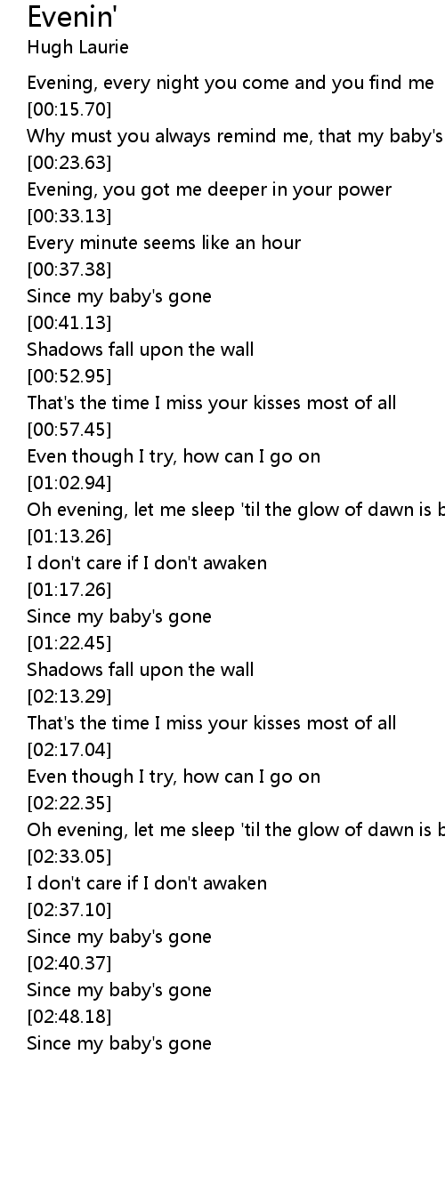 Oh evening, let me sleep 'til the glow of dawn is breaking |
