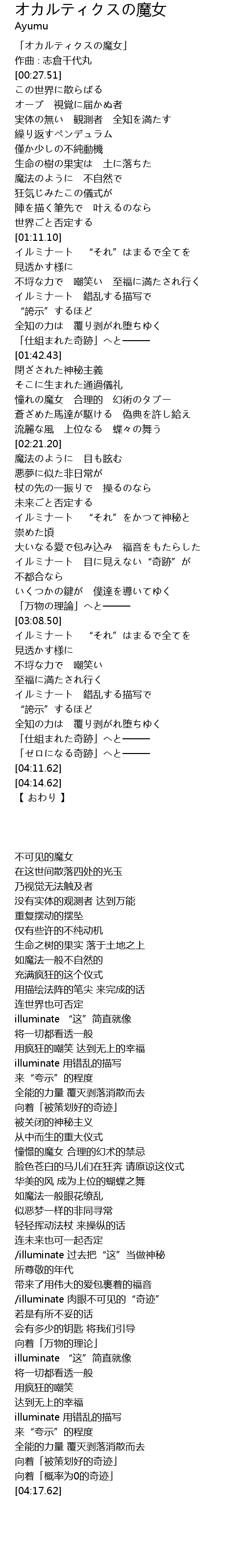 | [02:38.33] | イルミナート “それ”をかつて神秘と |