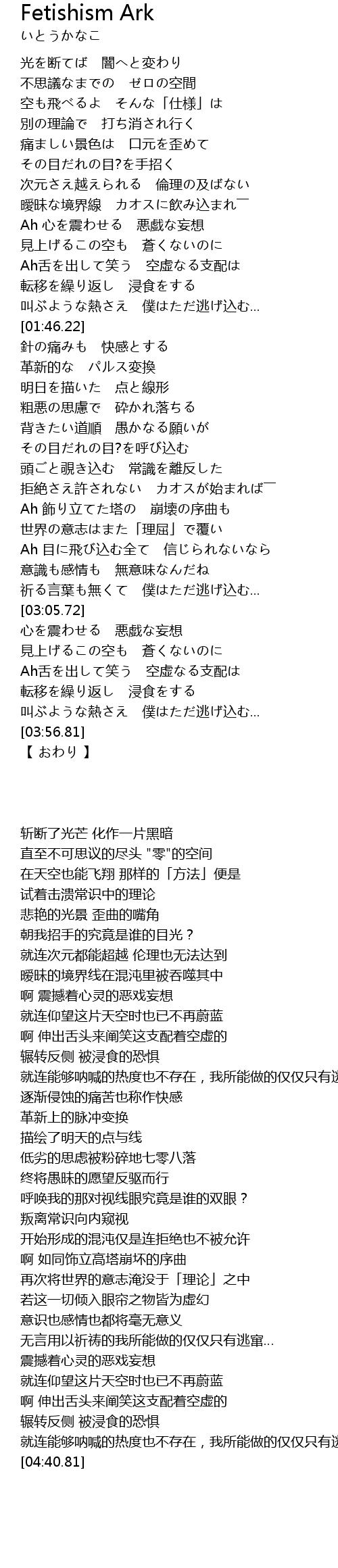 | 歌曲 | Fetishism Ark |