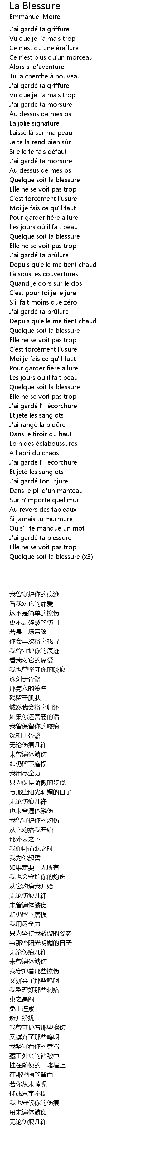 | [03:59.40] | Quelque soit la blessure (x3) |