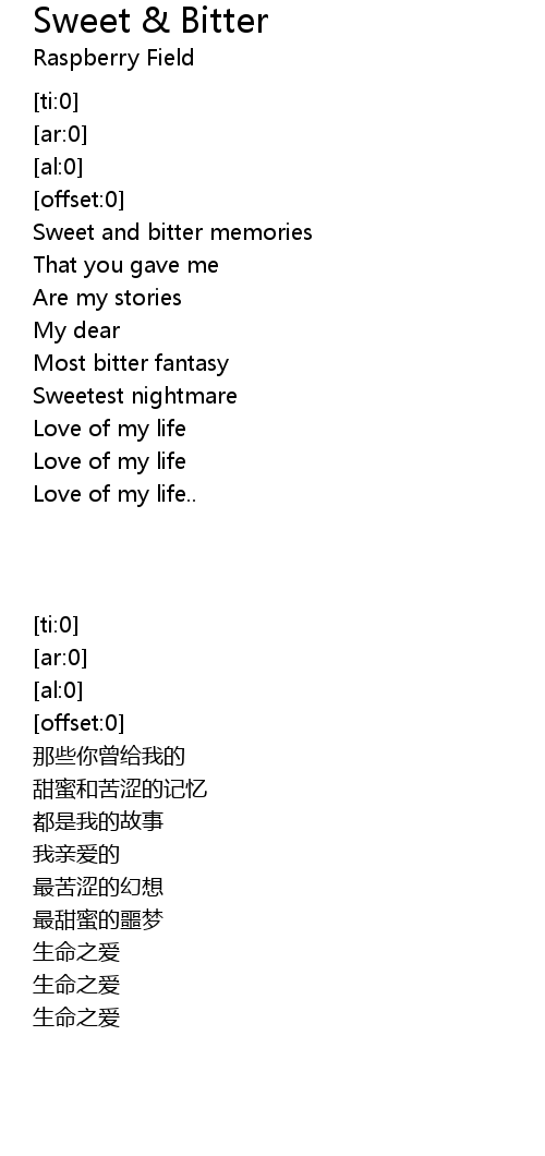 | [00:06.36] | 甜蜜和苦涩的记忆 |