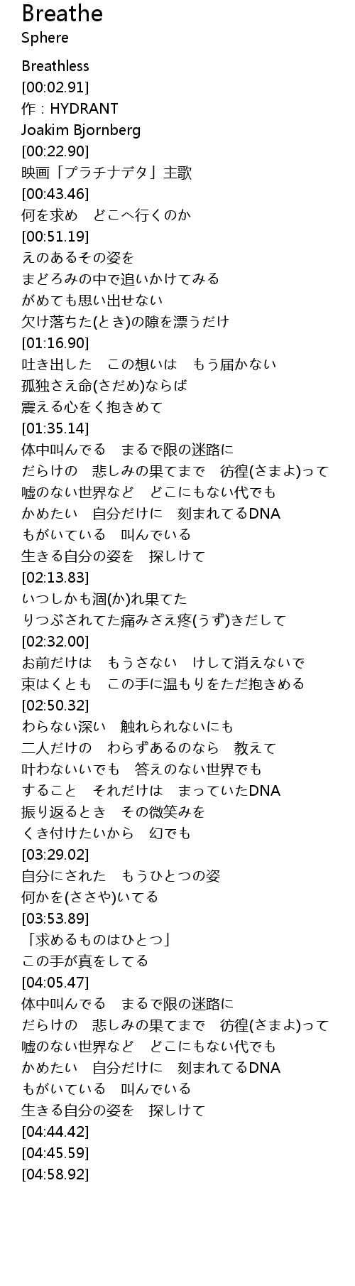 映画「プラチナデタ」主歌 |