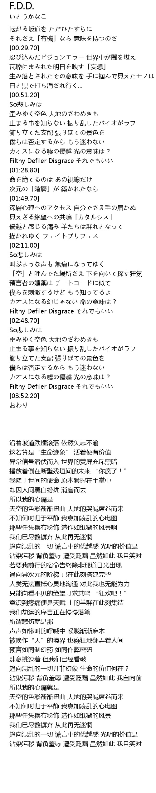 | [03:45.70] | Filthy Defiler Disgrace それでもいい |
