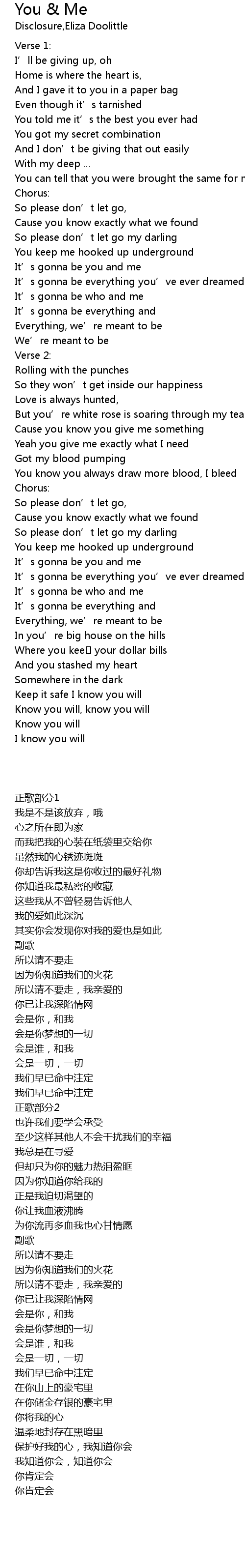 | 歌曲 | You & Me |
