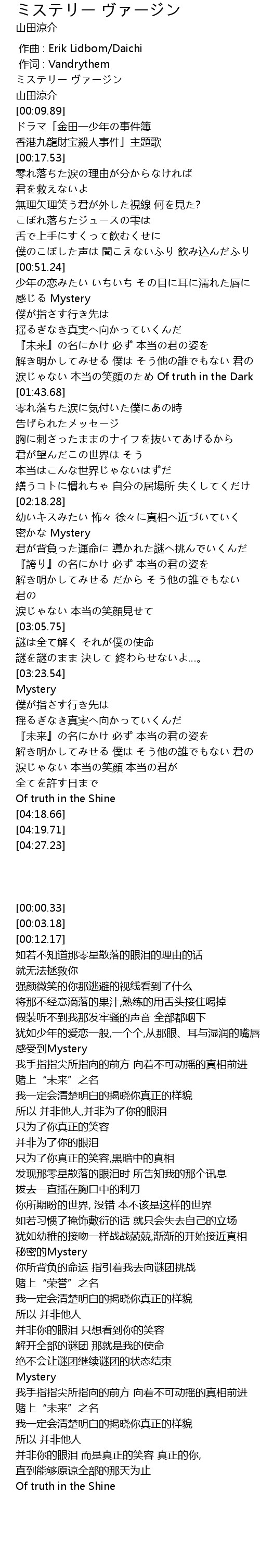 | [00:12.17] | ドラマ「金田一少年の事件簿 香港九龍財宝殺人事件」主題歌 |
