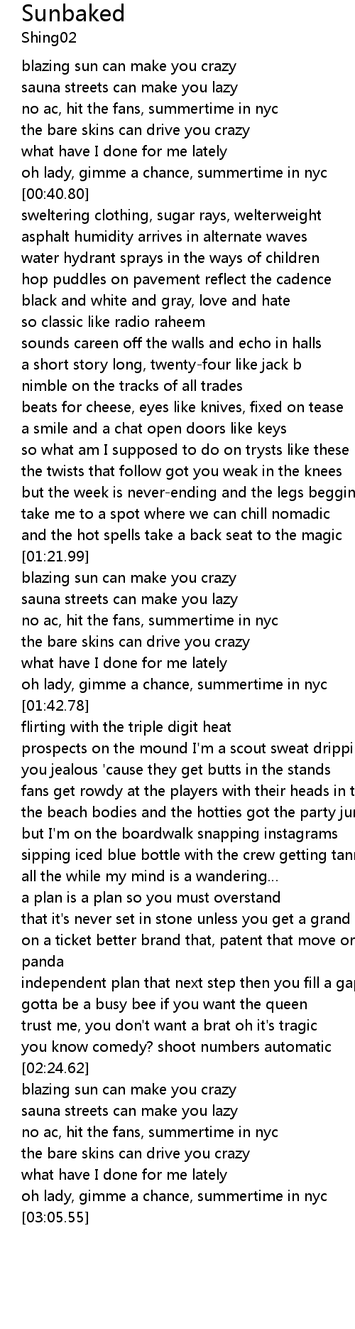 | [03:00.79] | oh lady, gimme a chance, summertime in nyc |