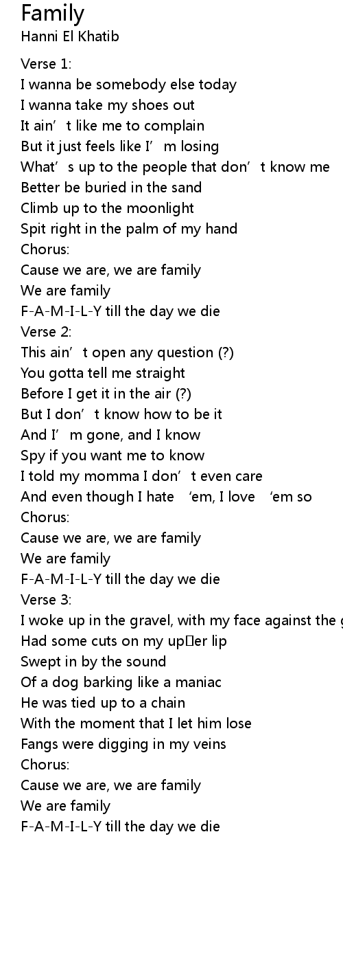 | Cause we are, we are family | |