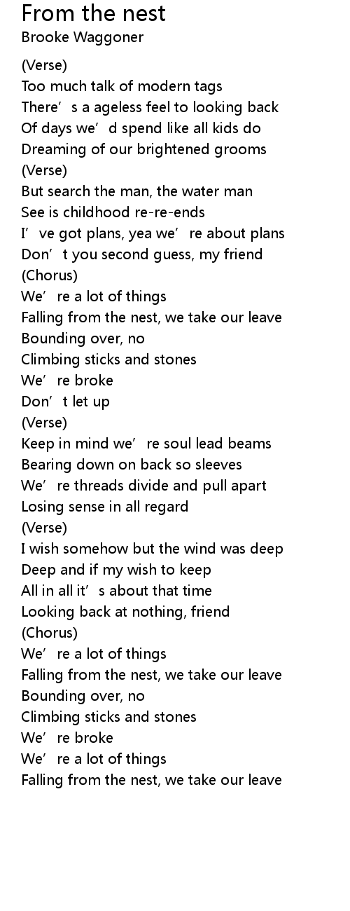 | Falling from the nest, we take our leave |