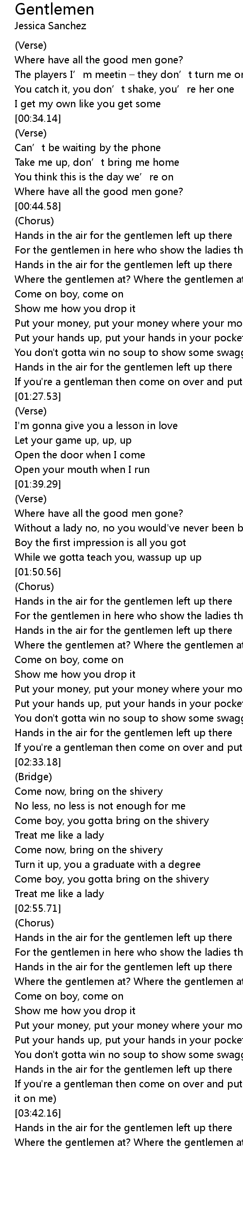 | [04:06.58] | Where the gentlemen at? Where the gentlemen at? Where? |