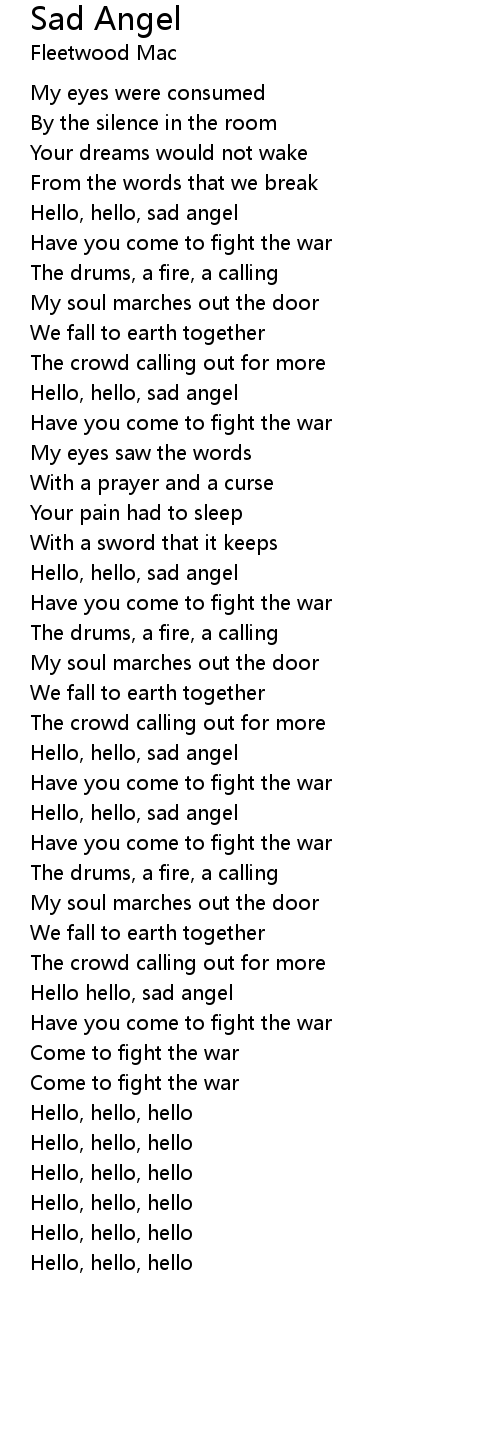 Hello, hello, sad angel |