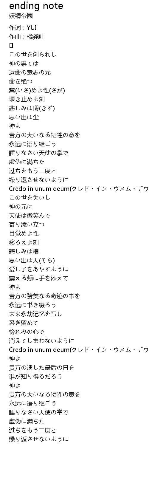 | Credo in unum deum(クレド・イン・ウヌム・デウム) | |