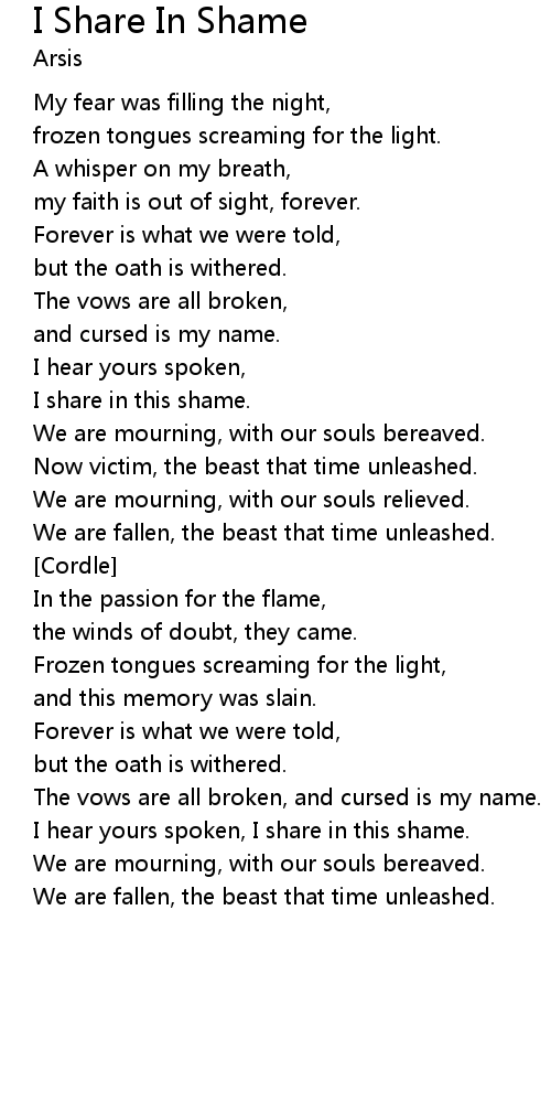 | I hear yours spoken, I share in this shame. | |