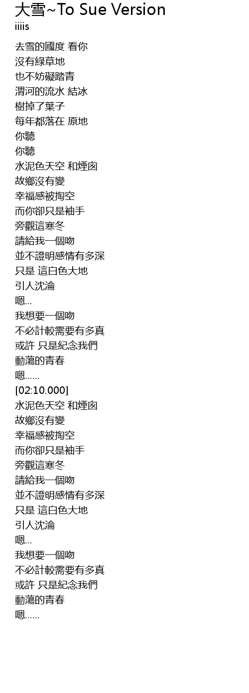 | [02:49.000] | 只是 這白色大地 |