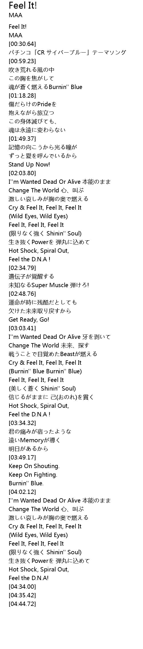 | [04:22.43] | Feel It, Feel It, Feel It |