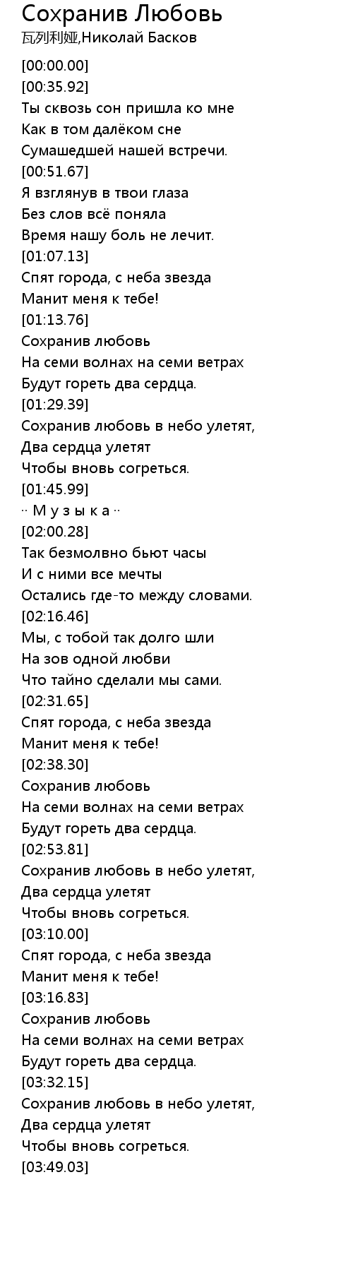 Сохранив Любовь 歌词