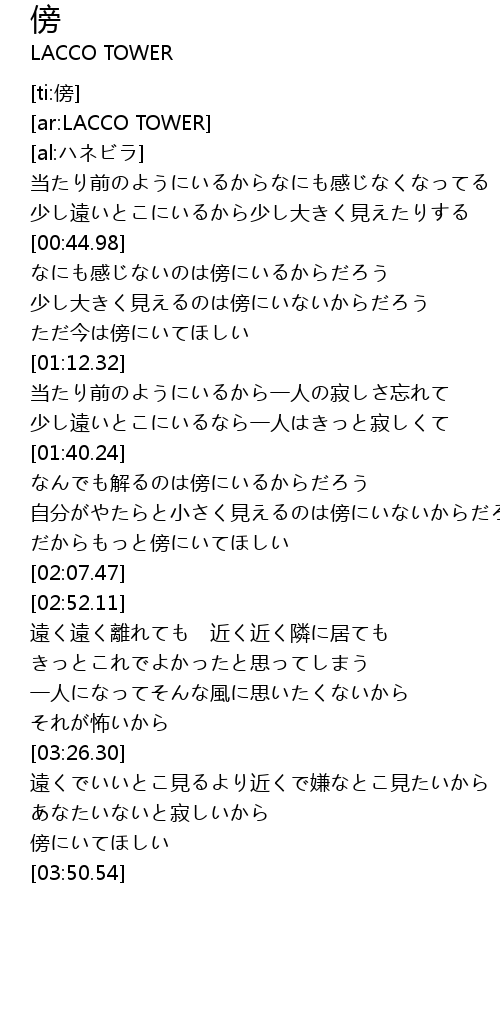 | [00:45.45] | なにも感じないのは傍にいるからだろう |
