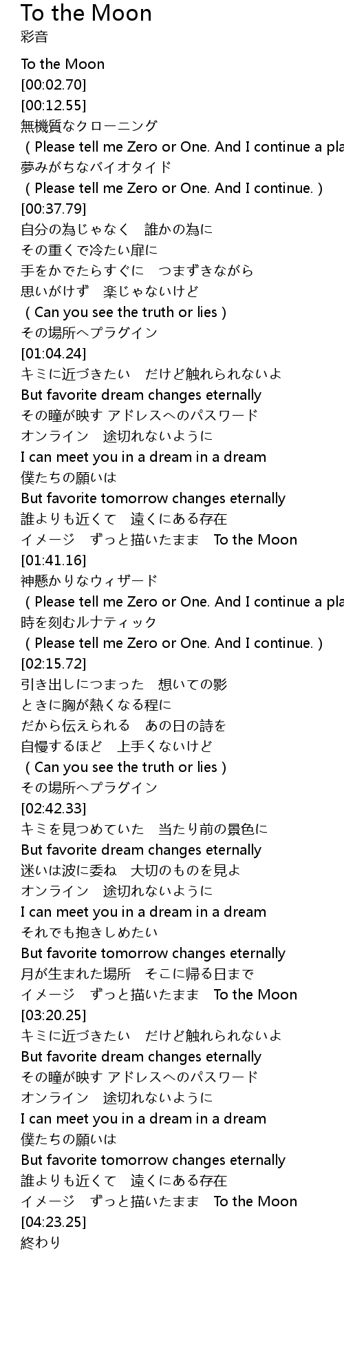 | [04:17.83] | miáo To the Moon |