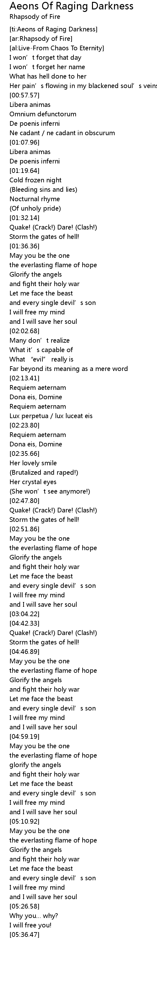 | [ti:Aeons of Raging Darkness] | |