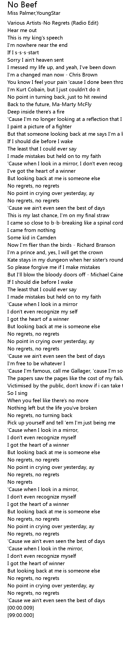 [00:03.37] Various Artists-No Regrets (Radio Edit)