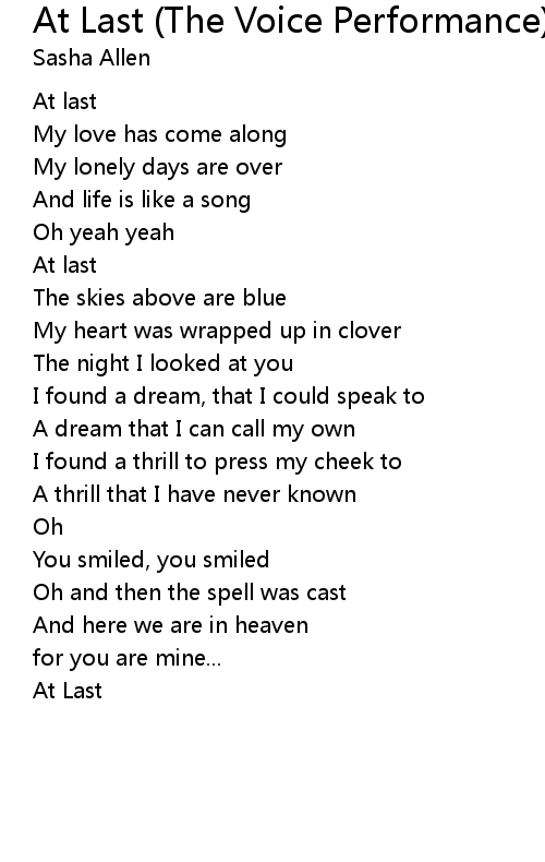 | 歌曲 | At Last (The Voice Performance) |