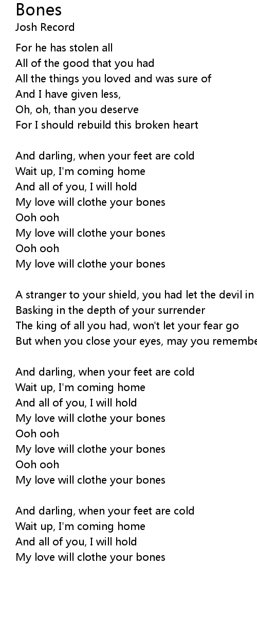 My love will clothe your bones |