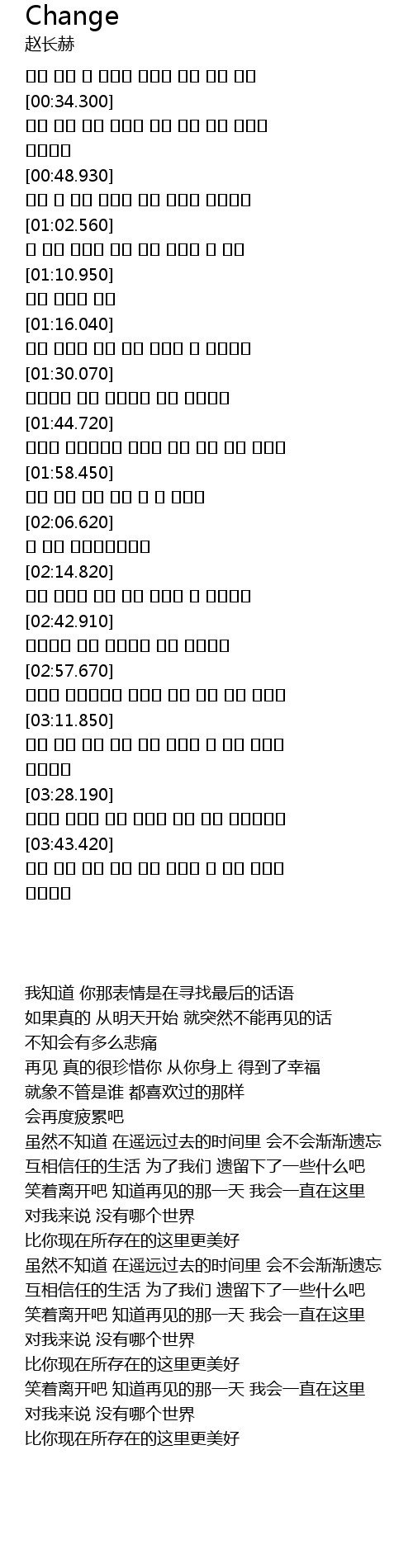 | [00:49.770] | 再见 真的很珍惜你 从你身上 得到了幸福 |