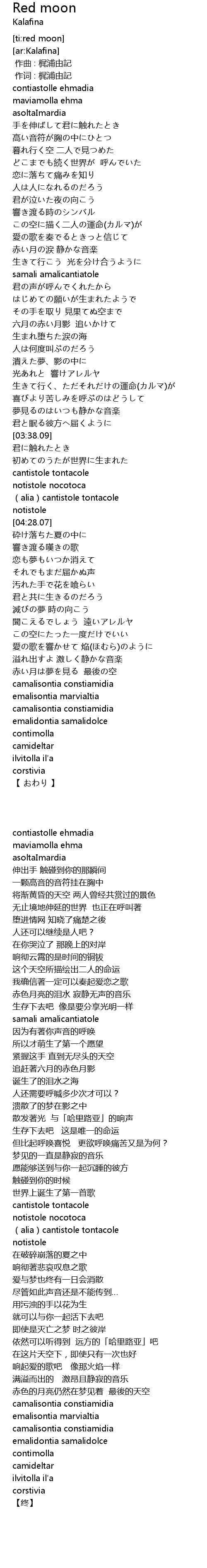 | [01:48.31] | 赤色月亮的泪水 寂静无声的音乐 |