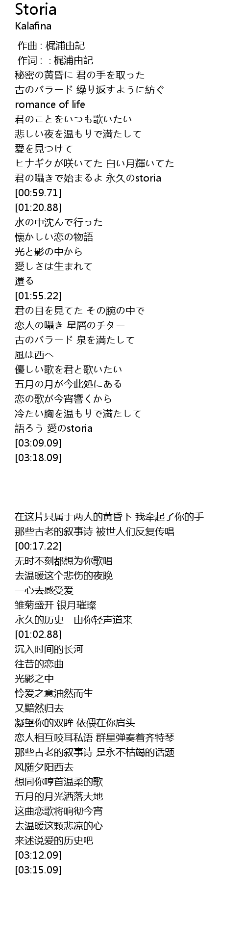 | [00:46.27] | 君の囁きで始まるよ 永久のstoria |