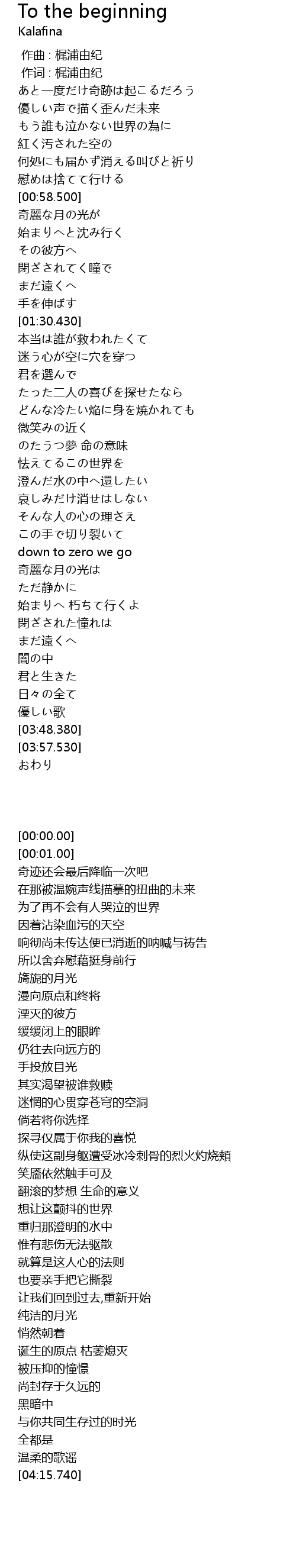 | [01:04.150] | 始まりへと沈み行く |