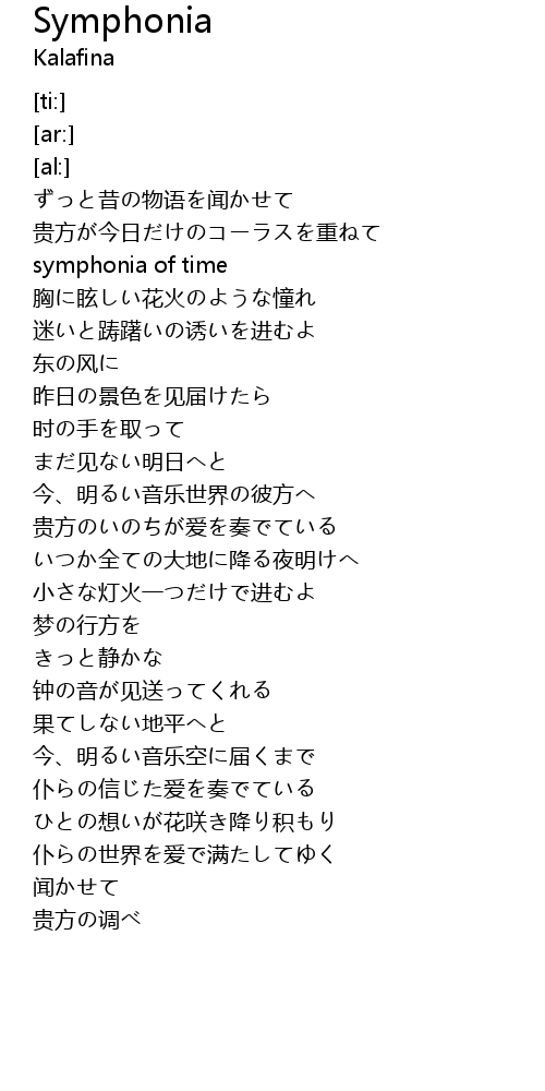 | [00:22.74] | 贵方が今日だけのコーラスを重ねて |