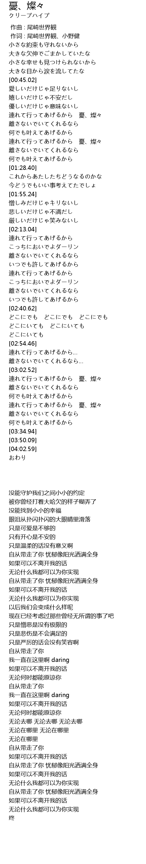 | [03:08.22] | 連れて行ってあげるから 憂、燦々 |