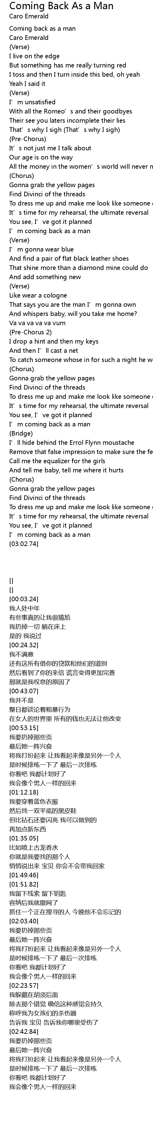 | [03:00.20] | I' m coming back as a man |