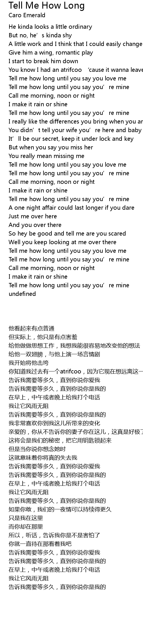 | [00:46.26] | Tell me how long until you say you' re mine |