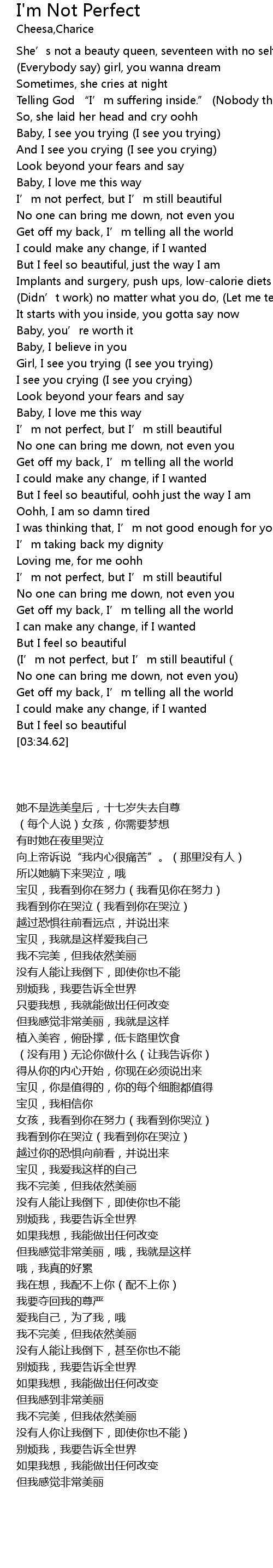 | [00:54.73] | I' m not perfect, but I' m still beautiful |
