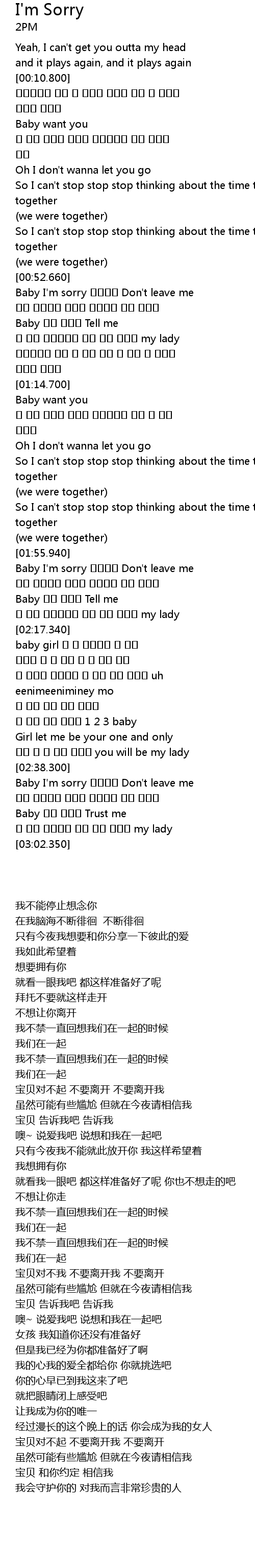 | [02:38.630] | Baby I'm sorry 떠나지마 Don't leave me |