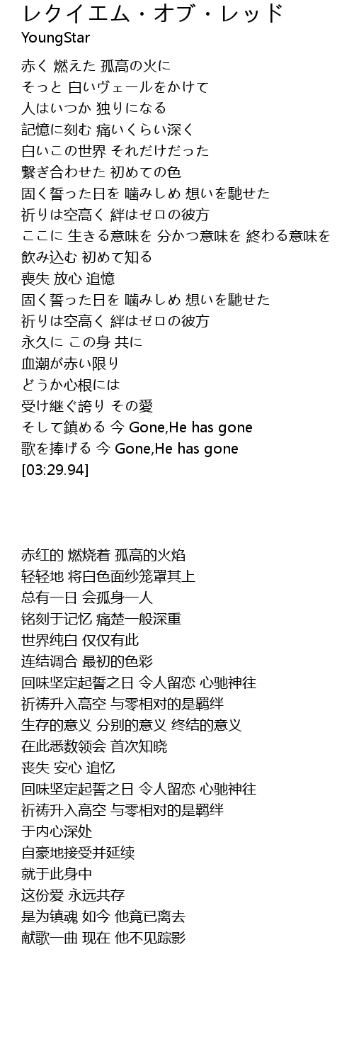 | [02:54.49] | そして鎮める 今 Gone,He has gone |