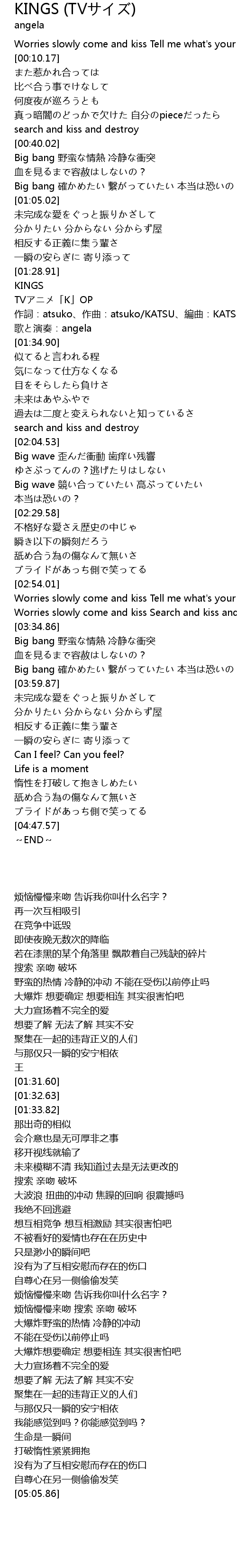 | [03:25.39] | Worries slowly come and kiss Search and kiss and destroy |