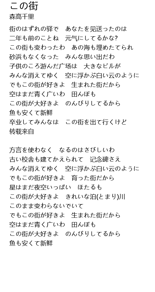 | この街も变わったわ あの海も埋めたてられ | |