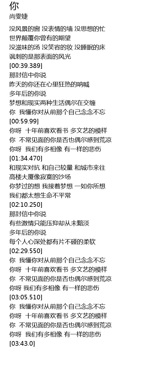 | [00:59.89] | 你 我懂你对从前那个自己念念不忘 |