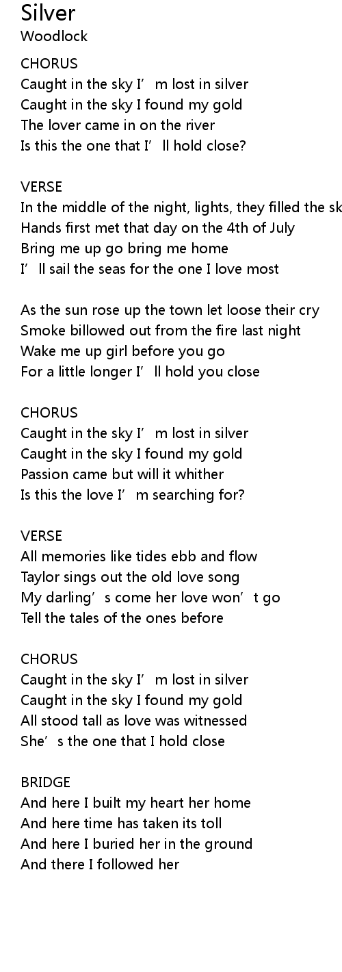 | Caught in the sky I' m lost in silver | |