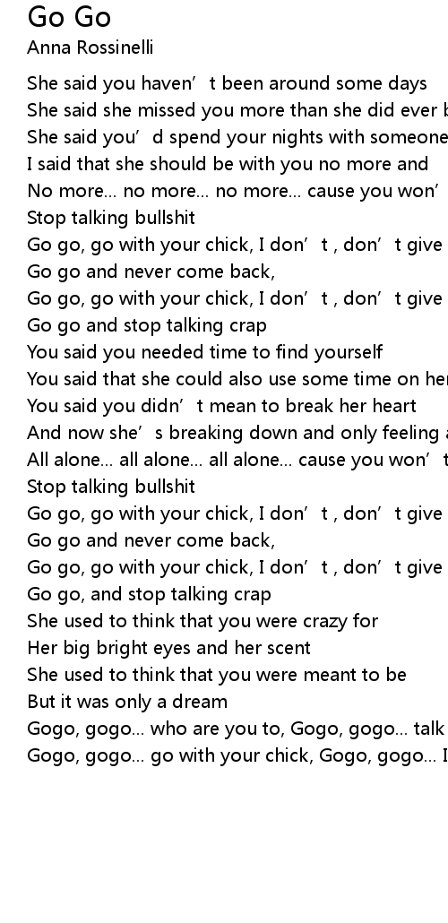| Gogo, gogo... go with your chick, Gogo, gogo... I don’t give a shit |