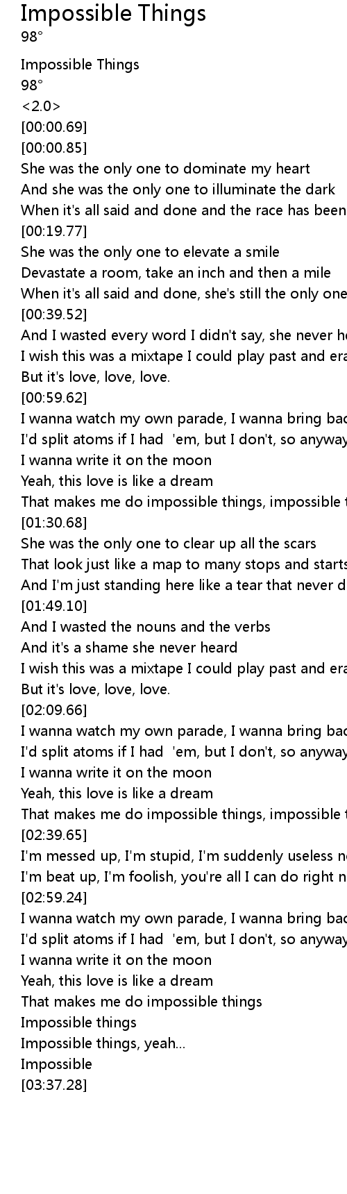 | [03:23.44] | Impossible things |