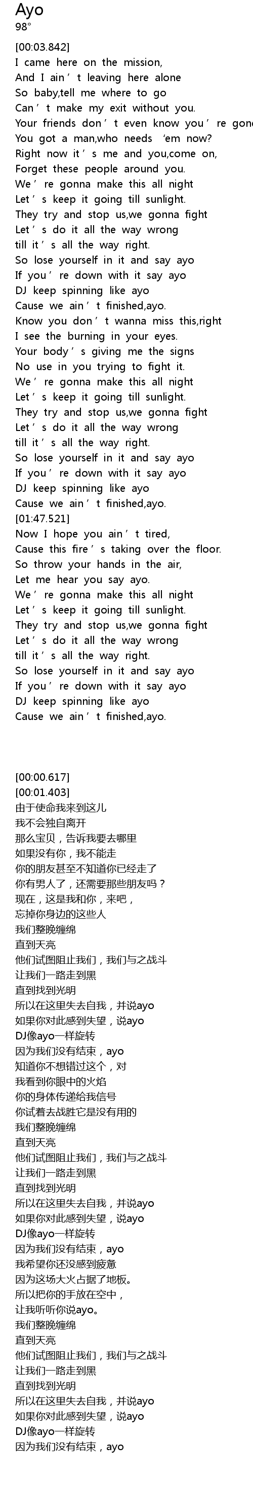 | [01:40.10] | DJ像ayo一样旋转 |