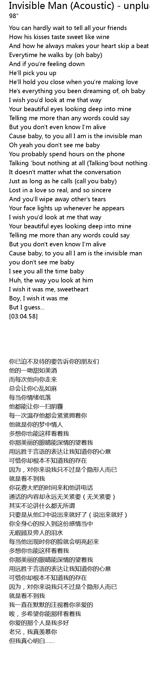 Cause baby, to you all I am is the invisible man |