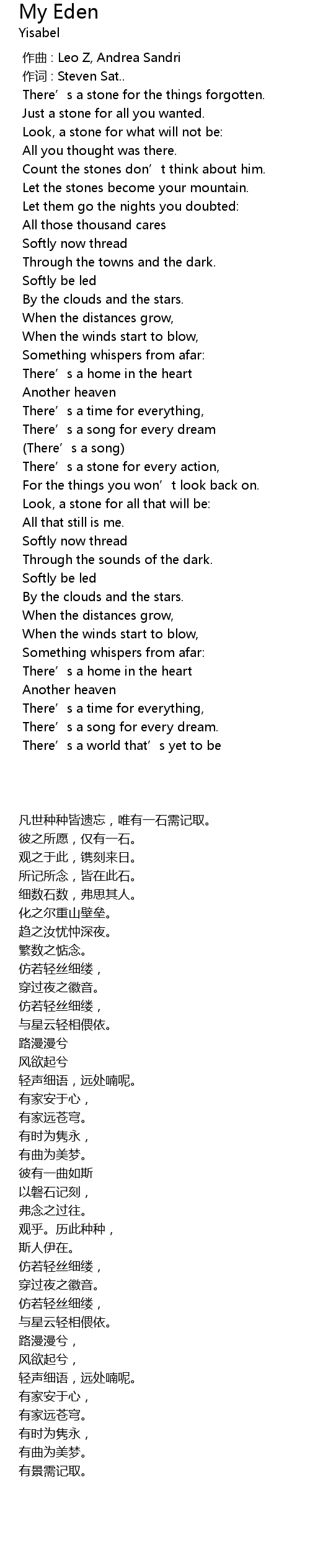 | [00:14.729] | There' s a stone for the things forgotten. |