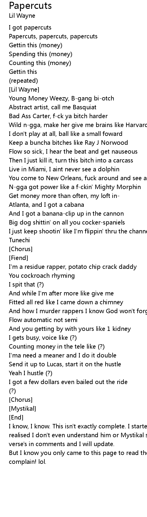 | But I know you only came to this page to read the Weezy lyrics so don't complain! lol. |