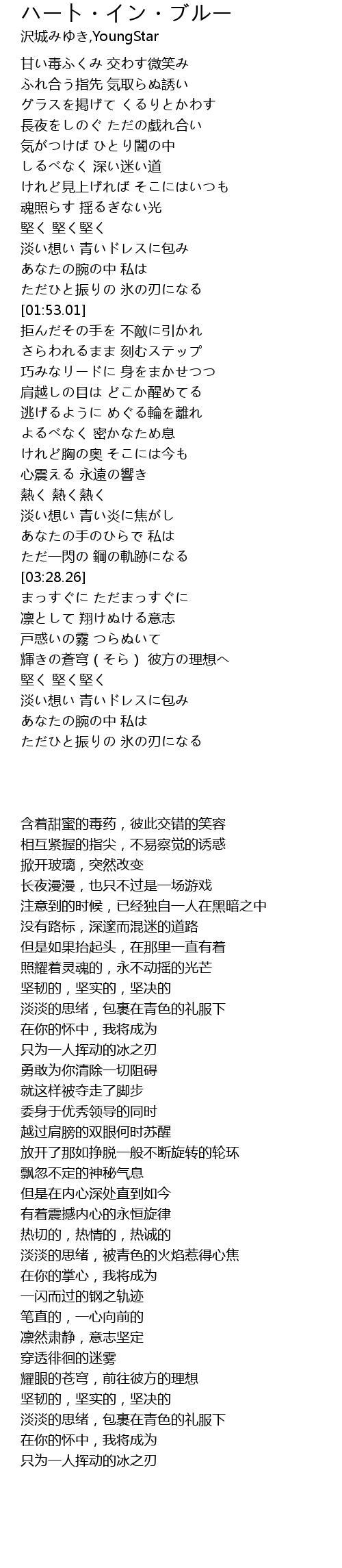 | [03:01.30] | 淡い想い 青い炎に焦がし |