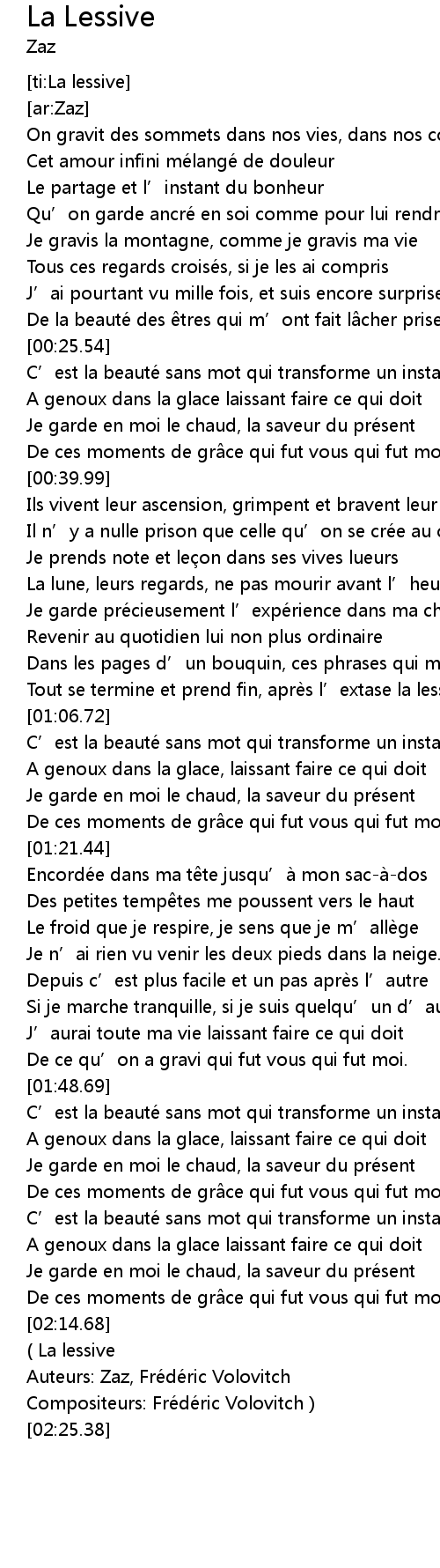 | [02:24.14] | Auteurs: Zaz, Fré dé ric Volovitch |