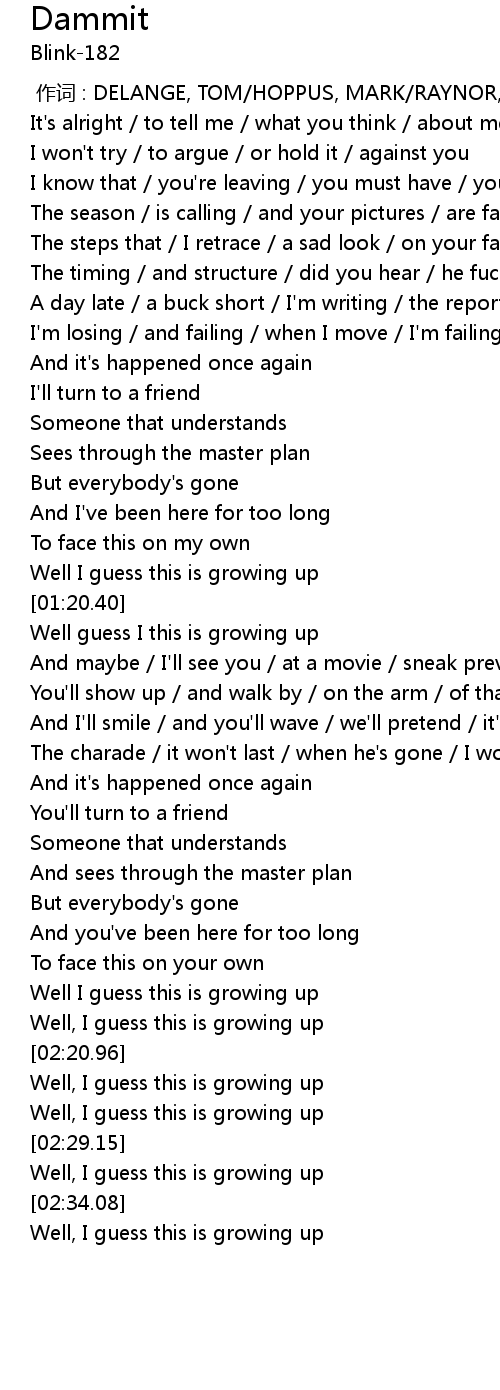 | [00:00.00] | 作词 : DELANGE, TOM/HOPPUS, MARK/RAYNOR, SCOTT |