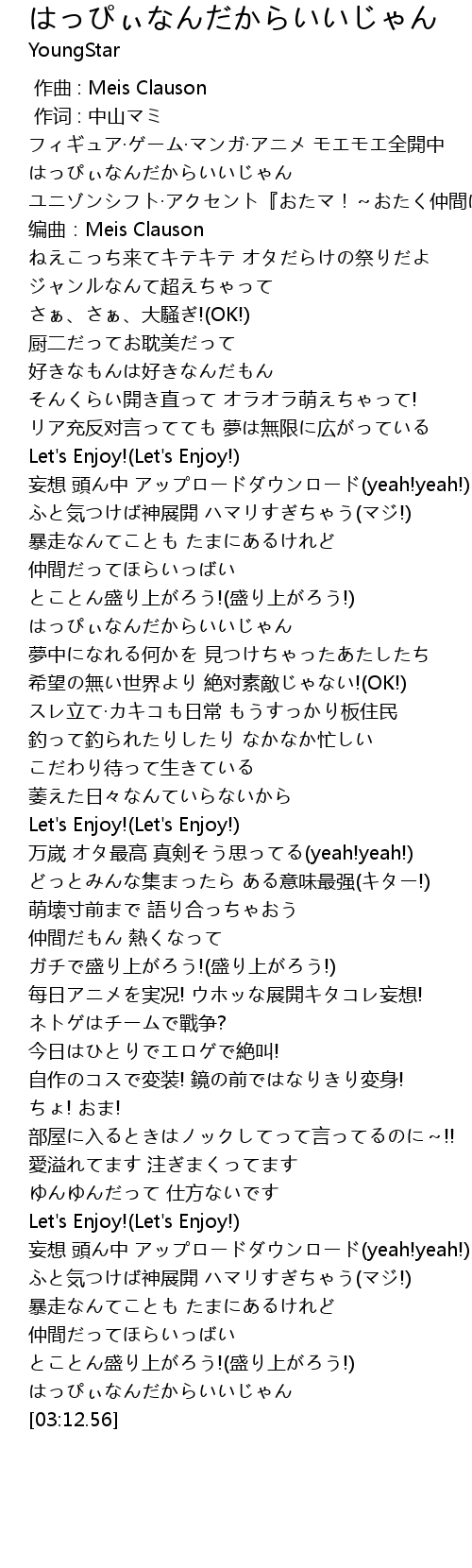 | [03:10.08] | はっぴぃなんだからいいじゃん |